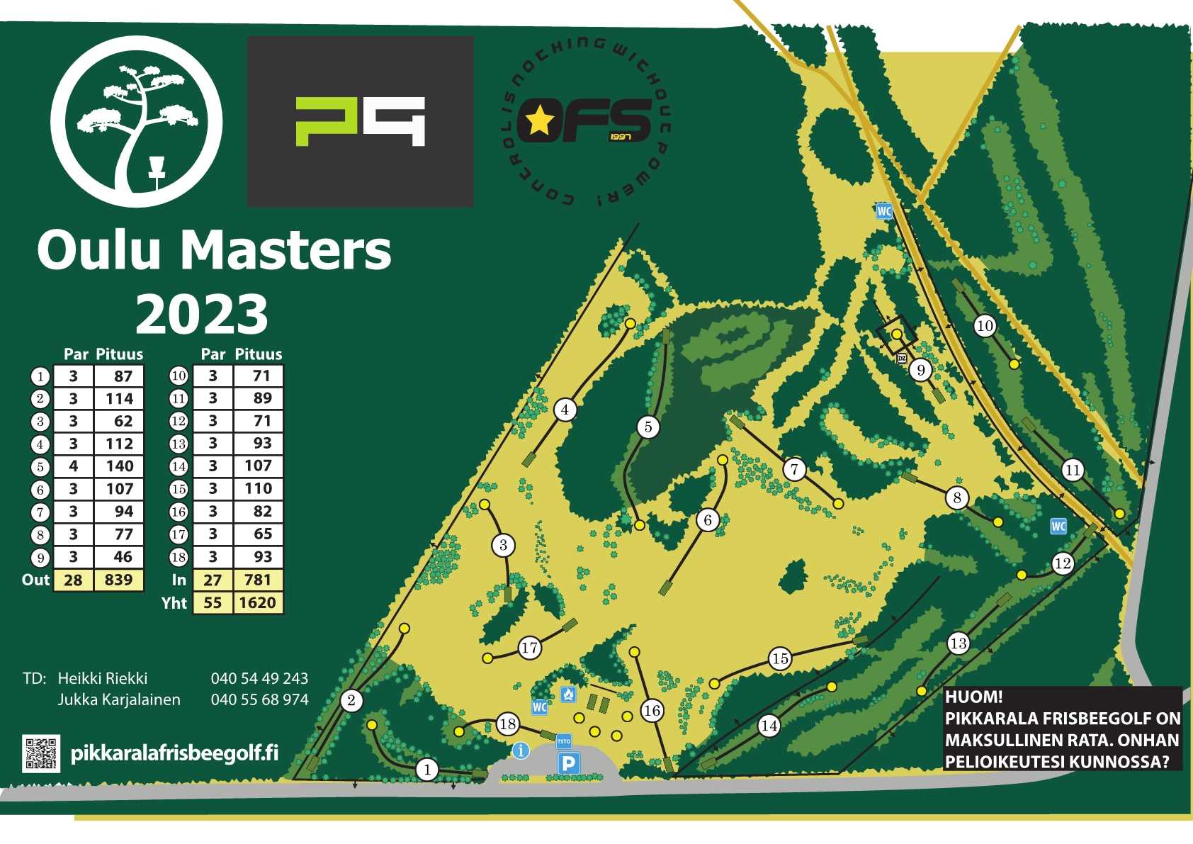 Yli 35-vuotiaiden leppoisan rento kisatapahtuma Oulu Masters 2023 järjestetään tällä viikolla 12.8.2022 tutulla Pikkarala Frisbeegolfin rata-alueella. Perjantaina 11.8.2023 järjestetään aikaisempien vuosien malliin parikisa, jossa kilpailijat pääsevät tutustumaan Pro-/Ama-rata-alueen kisarataan. Tänäkin vuonna noudatetaan aikaisempien vuosien mukavia kisaperinteitä kuten esimerkiksi sitä, että kilpailuun pääsee mukaan myös esi-Masters ikäisiä frisbeegolfaajia.