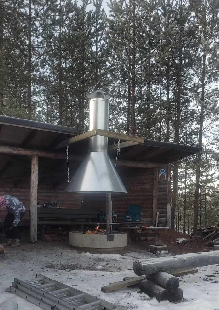 Laavun grillille asennettiin huuva vähentämään grillin käyttäjille aiheutuvia savuhaittoja. Lisäksi laavulle hankittiin klapien halkomiskirves.