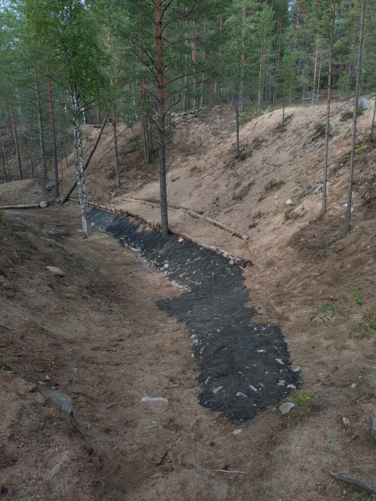 Tek-radan väylän #10 kuruosaan tehtiin rinteen paalutusta sen alas valumisen estämiseksi.