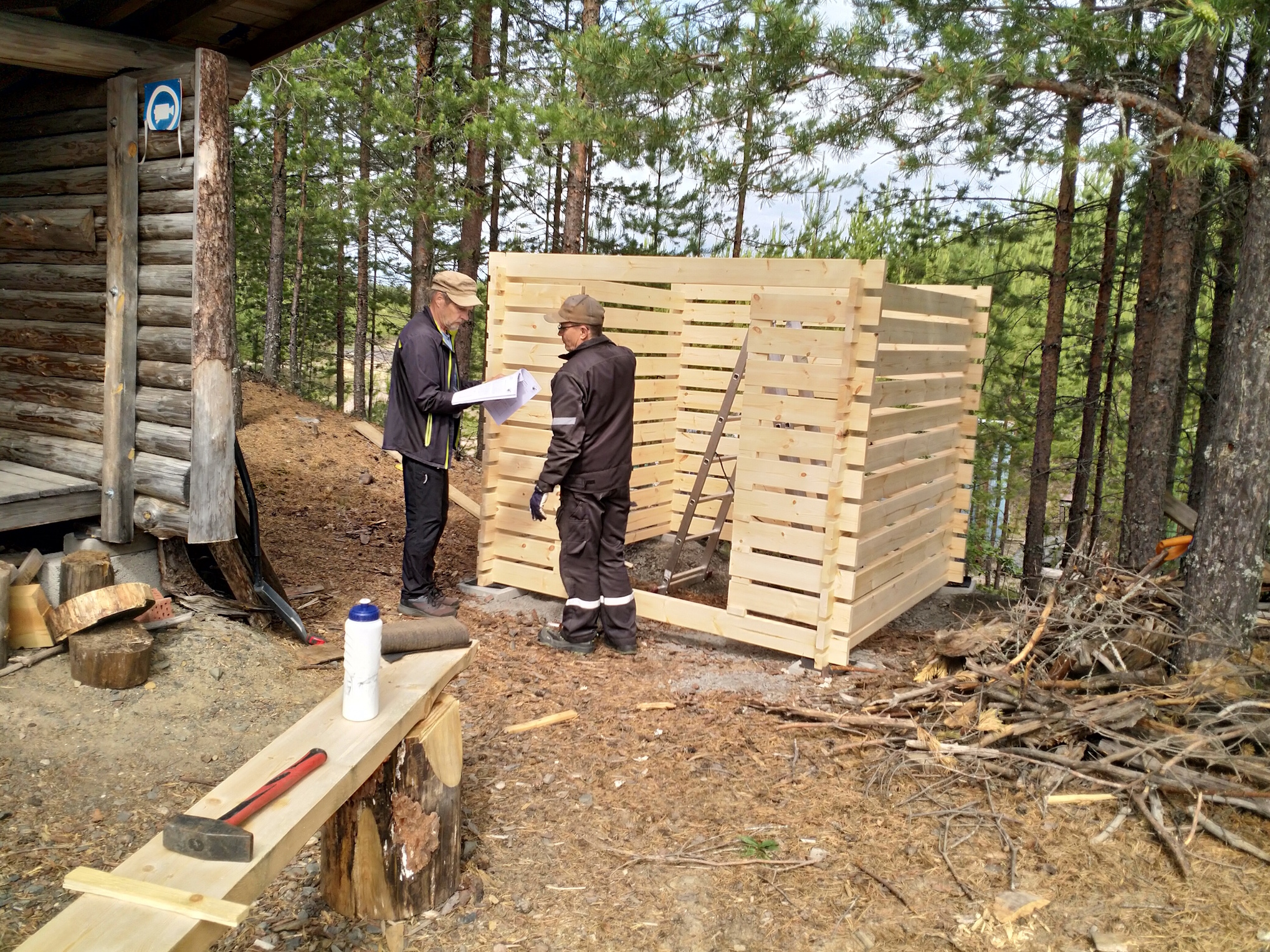 Pitkään suunniteltu halkovaja hankittiin ja pystytettiin laavun läheisyyteen: siten grillin polttopuut säilyvät aikaisempaa kuivempina myös vuoden sateisina ajankohtina.