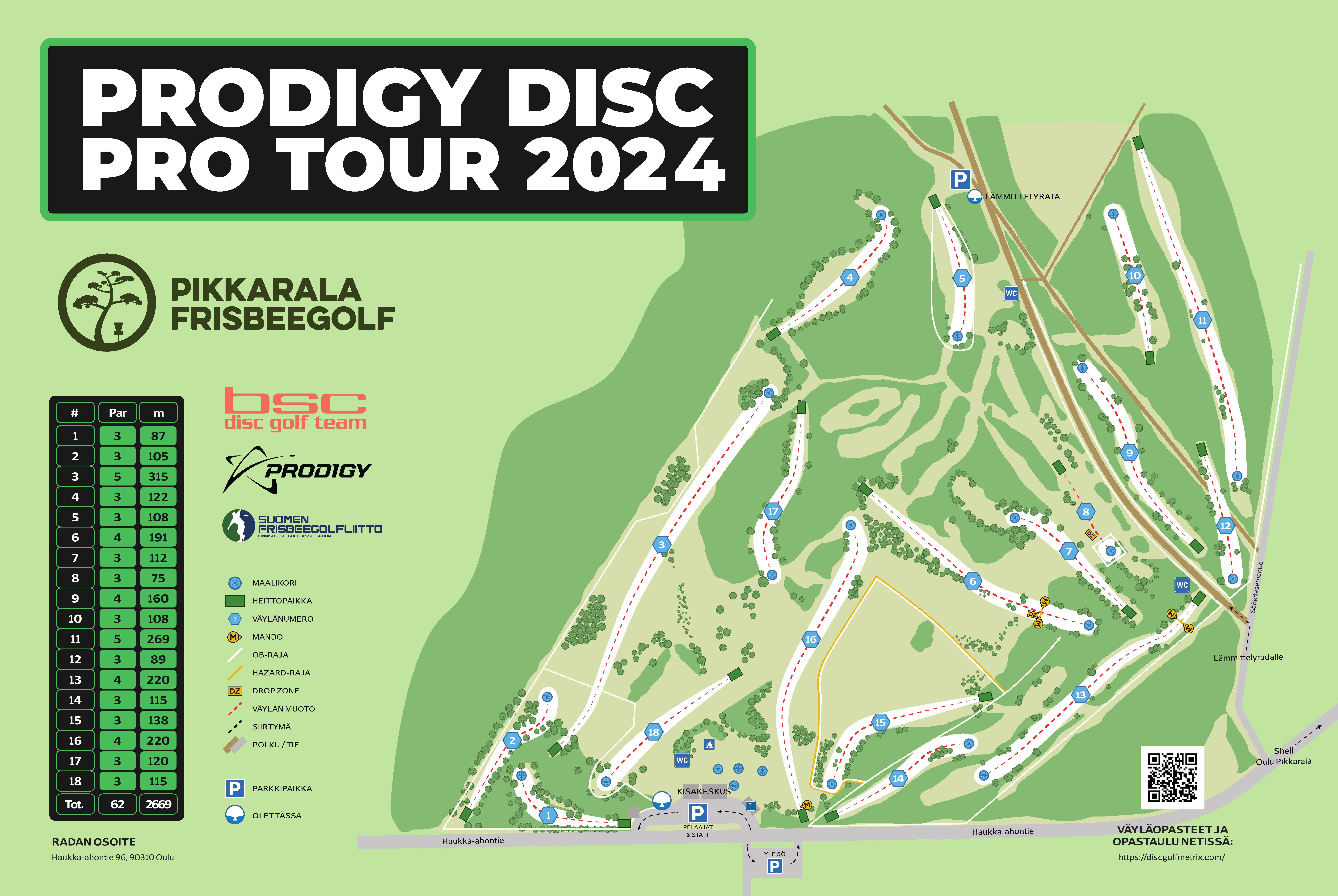 BSC järjestää PDPT esikisan sunnuntaina 26.5. klo 10 – 15 ja rata on silloin kilpailukäytössä. Keskiviikkoaamusta 29.5 sunnuntai-iltaan saakka 2.6. Pro tourin rata on vain Prodigy Disc Pro tourin kilpailijoiden käytössä.