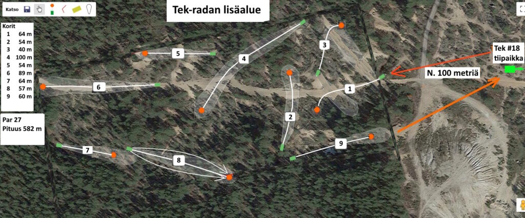 Tek-radan n. 3 hehtaarin lisäalueelle on v. 2022 suunniteltu ja toteutettu Tek-radan lisäalueelle 9 väylän lisäysi. Tänä keväänä lisäaluetta on hieman muutettu poistamalla pari väylää ja tekemällä kaksi uutta väylää. Parille väylälle on asennettu Flatpad-heittolavat ja rakennettu portaat lavaväylien tiipaikoille. Harrastajat voivat käyttää em. aikana kahta ratavaihtoehtoa Tek-radan takaysillä/lisäalueella.